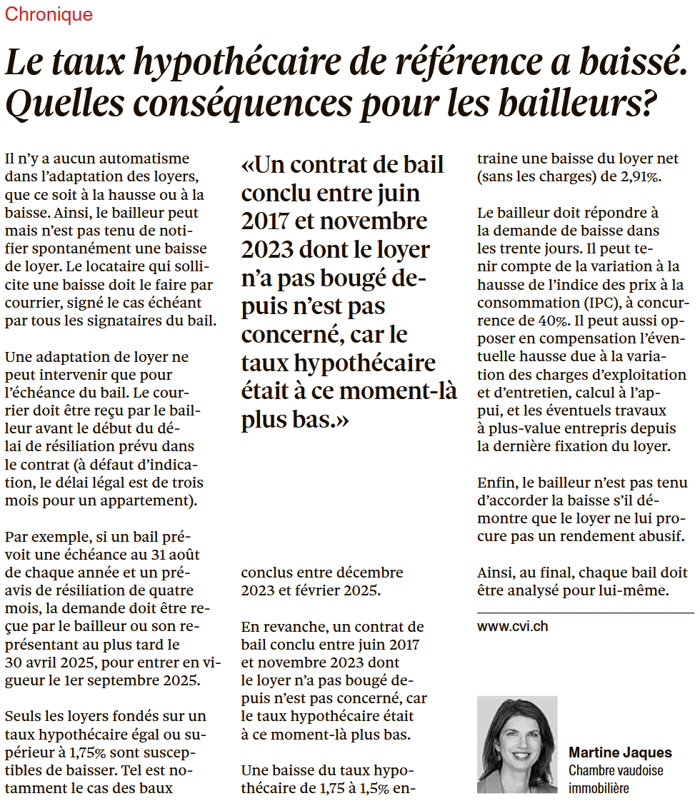 Le taux hypothécaire de référence a baissé. Quelles conséquences pour les bailleurs ?